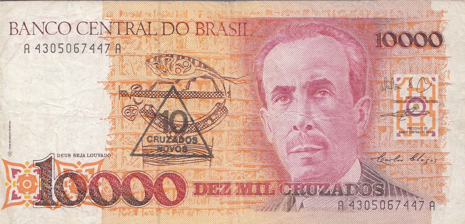 10000 CRUZADOS BANKNOTE BRAZIL ( REF 231 )