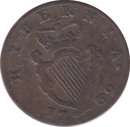 A historic Irish half penny from 1769, a fascinating piece of Georgian-era currency. This copper coin represents an important period in Irish monetary history, featuring authentic period design and patina. A genuine collectible for numismatists and history enthusiasts seeking authentic 18th-century Irish coinage. Condition varies with age; each coin carries its own unique character and wear patterns from centuries of circulation. A tangible connection to Ireland's past.