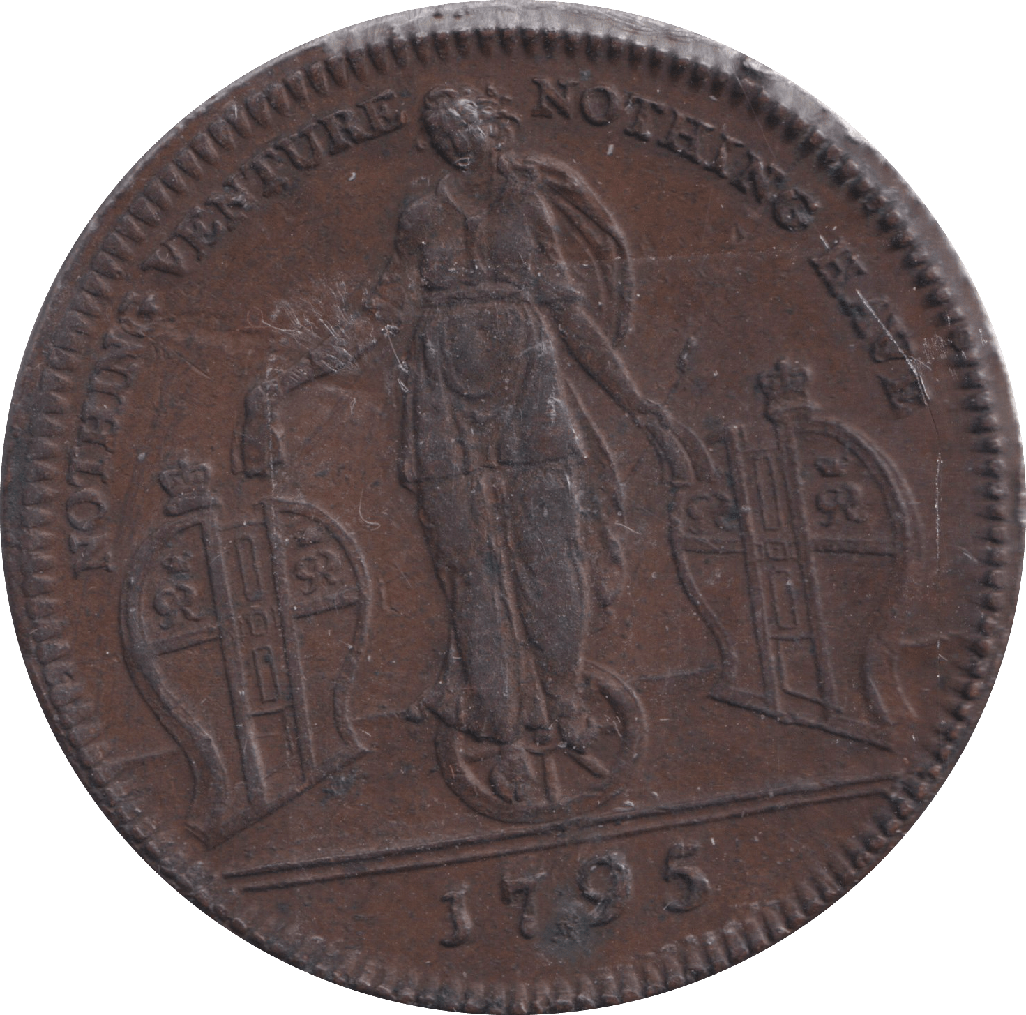 The 1795 Halfpenny Cutters Token from Richardsons, Middlesex, is a distinctive example of late 18th-century trade tokens used during coin shortages. Crafted with precision, this token not only reflects the economic conditions of the period but also highlights the regional commercial activity led by the Richardson family in Middlesex. Its preservation and clear details provide valuable insights for collectors and historians interested in Georgian token coinage and local economic history.