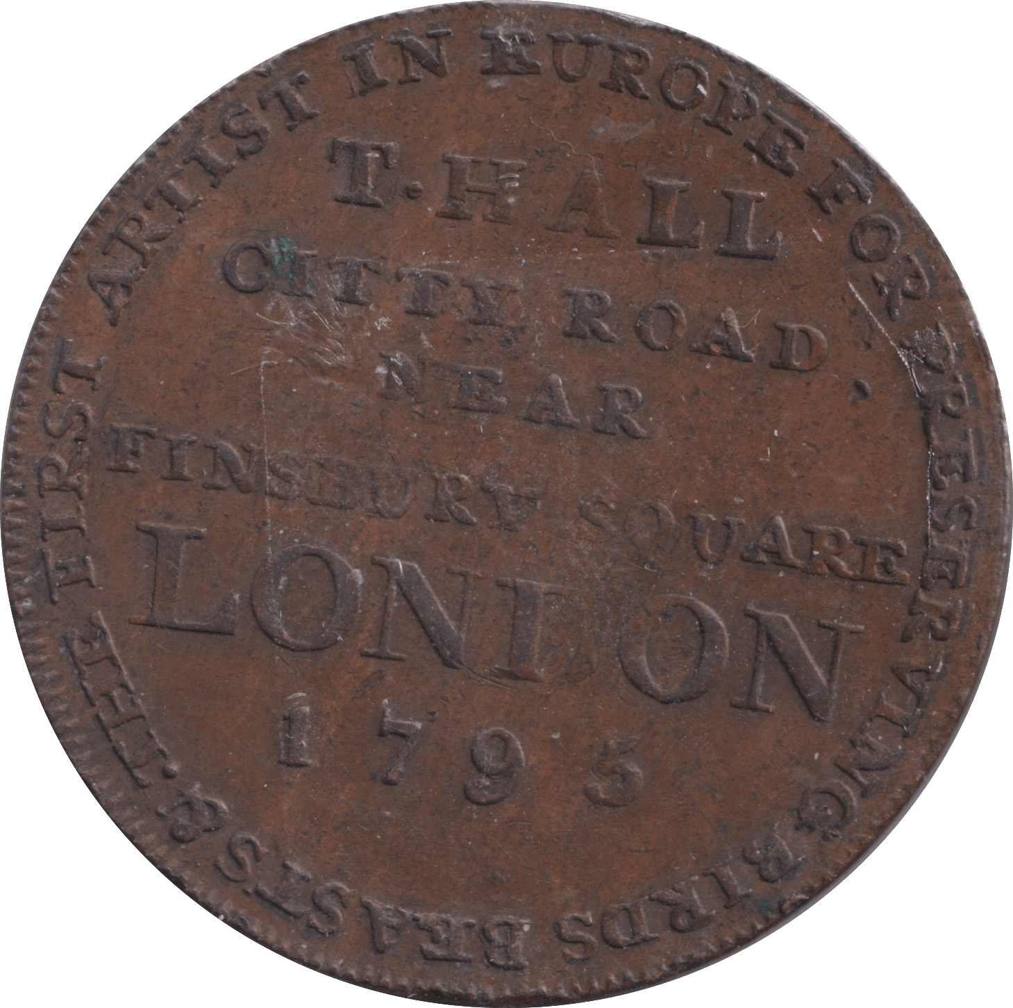The 1795 Halfpenny T Hall Taxidermy Token from Finsbury Square is a rare numismatic piece showcasing 18th-century craftsmanship. This token, issued during a period when such coins served as local currency or advertising tools, is associated with T Hall’s taxidermy business. Its historical significance and well-preserved condition make it a valuable addition for serious collectors interested in British trade tokens and the social history of the era.