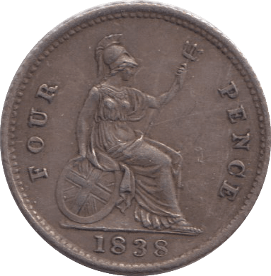 A distinguished 1838 fourpence in extremely fine condition, representing the opening year of Victoria's reign. This silver coin exhibits well-preserved detail with only light surface wear, demonstrating superior strike quality and excellent eye appeal. The EF grade confirms strong definition across all design elements, making it particularly sought after by collectors of early Victorian coinage. A significant piece for those pursuing complete date runs or specialising in this historically important numismatic period.