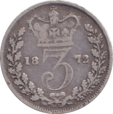 An 1872 threepence in fine condition, representing a quality example from the later Victorian period. This silver coin exhibits minimal wear with well-defined features and legible inscriptions throughout. The fine grade indicates responsible preservation over more than 150 years, making it suitable for both serious collectors and those new to Victorian numismatics. A reliable choice for completing date runs or building a comprehensive threepence collection from this prolific era of British coinage.