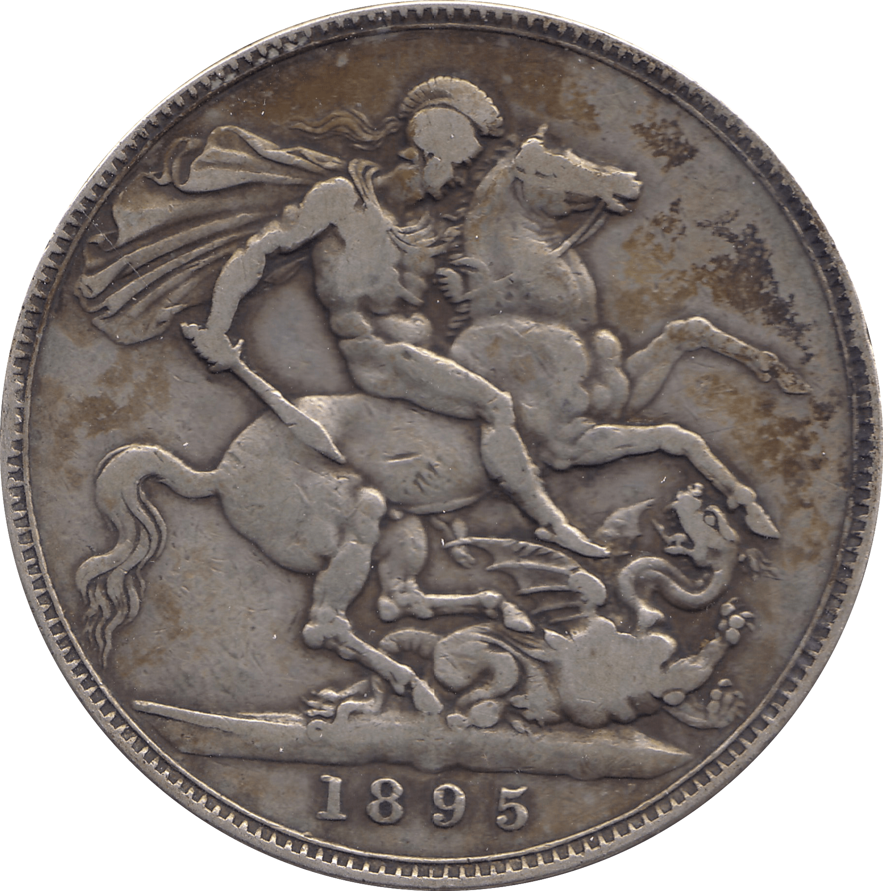 This 1895 Crown from the United Kingdom features a design reflective of the late Victorian era. The coin exhibits moderate wear typical of its age, with visible details on both the obverse and reverse sides. It remains a sought-after piece among collectors interested in British numismatics of the late 19th century.