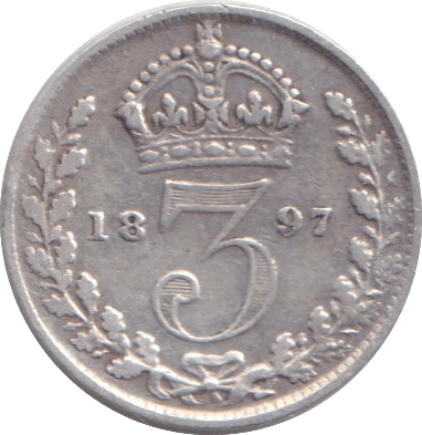 A notable 1897 Maundy threepence in very fine condition, exemplifying a mid-Victorian Maundy issue of considerable collector appeal. Struck in limited quantities for the sovereign's annual Maundy ceremony, these coins remain genuinely scarce in the numismatic marketplace. This specimen presents well-defined surfaces with commendable preservation and attractive appearance, displaying moderate wear appropriate to its grade whilst retaining substantial detail and character. An excellent choice for collectors assembling focused Maundy collections or those pursuing comprehensive Victorian coinage specialisations.