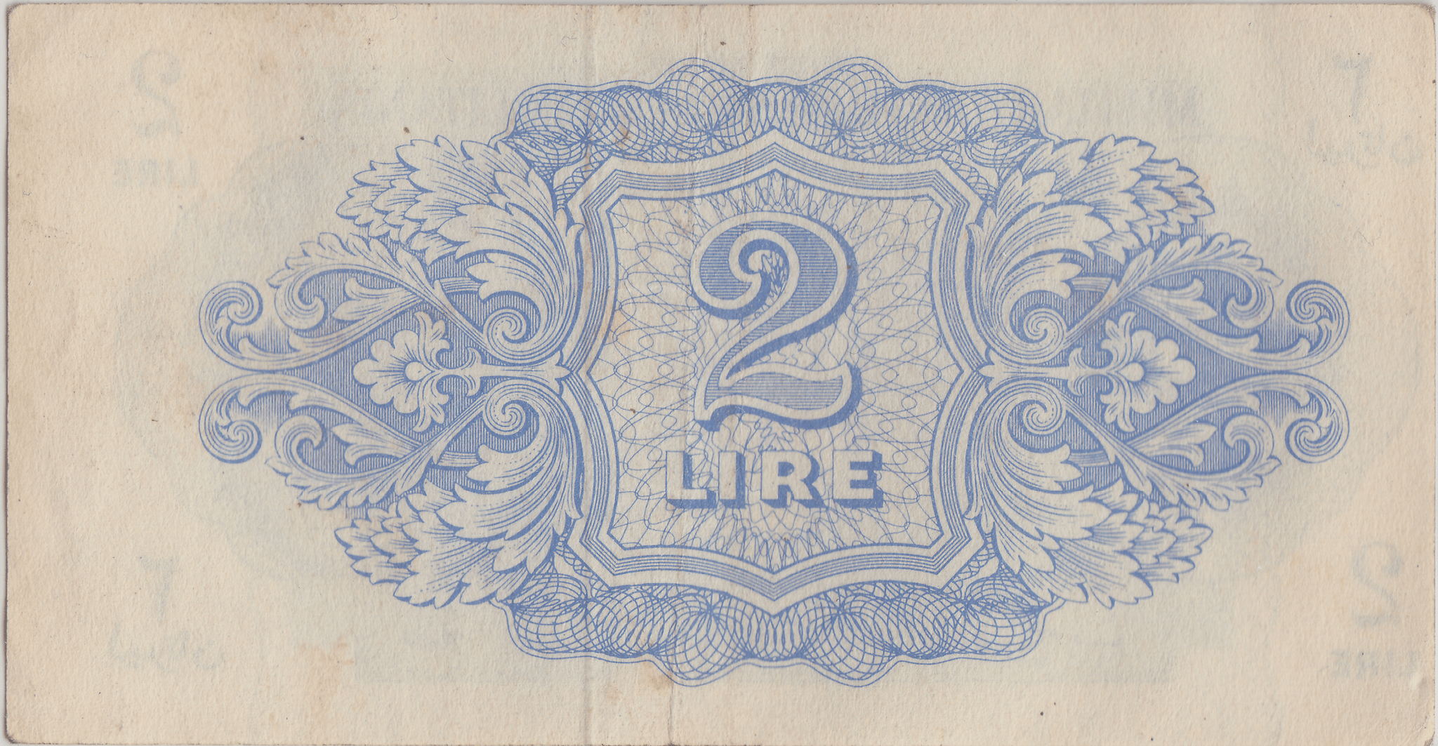 1943 BRITISH MILITARY AUTHORITY TRIPOLITANIA 2 LIRE BANKNOTE CROWN LION REF 1598