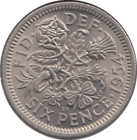 An Extremely Fine sixpence from 1954, showcasing exceptional preservation from Queen Elizabeth II's early reign. This coin displays virtually no wear with crisp striking throughout, sharp portrait definition, and clear reverse lettering. Original mint lustre remains prominent in the fields and recesses, creating an attractive appearance. Light handling marks only become apparent under magnification. An outstanding example for discerning collectors seeking premium-quality mid-1950s sixpences.