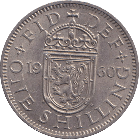 A scarce Scottish shilling from 1960 in Almost Uncirculated condition. This pre-decimal coin features the lion rampant within a double tressure, characteristic of Scottish coinage from this era. The AUNC grade indicates minimal wear with sharp detail throughout, making it an excellent example for collectors seeking quality specimens of mid-20th century Scottish currency. A notable piece from the final years before decimalization transformed British coinage.