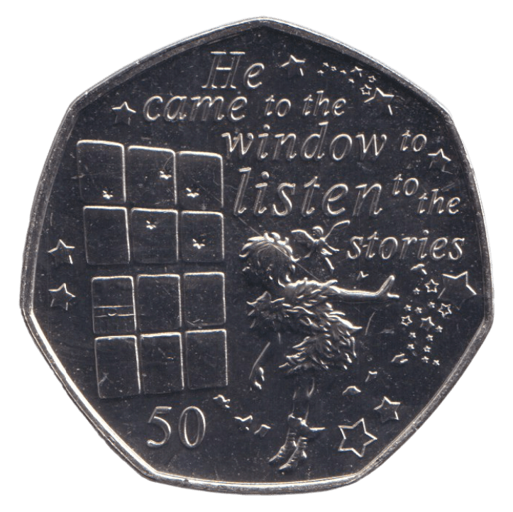 This 2020 Isle of Man 50p coin captures a defining moment from Peter Pan's narrative—Tinker Bell at the nursery window. Rendered in brilliant uncirculated condition, the design showcases the fairy's delicate form with remarkable precision and artistic finesse. Each specimen is struck to the highest numismatic standards, displaying pristine fields and exceptional detail. An essential piece for collectors pursuing the Isle of Man Peter Pan series or those drawn to literary-inspired coinage. The coin's superior quality and thematic significance make it a distinguished addition to any collection, representing both the enduring appeal of classic literature and the excellence of contemporary coin design.