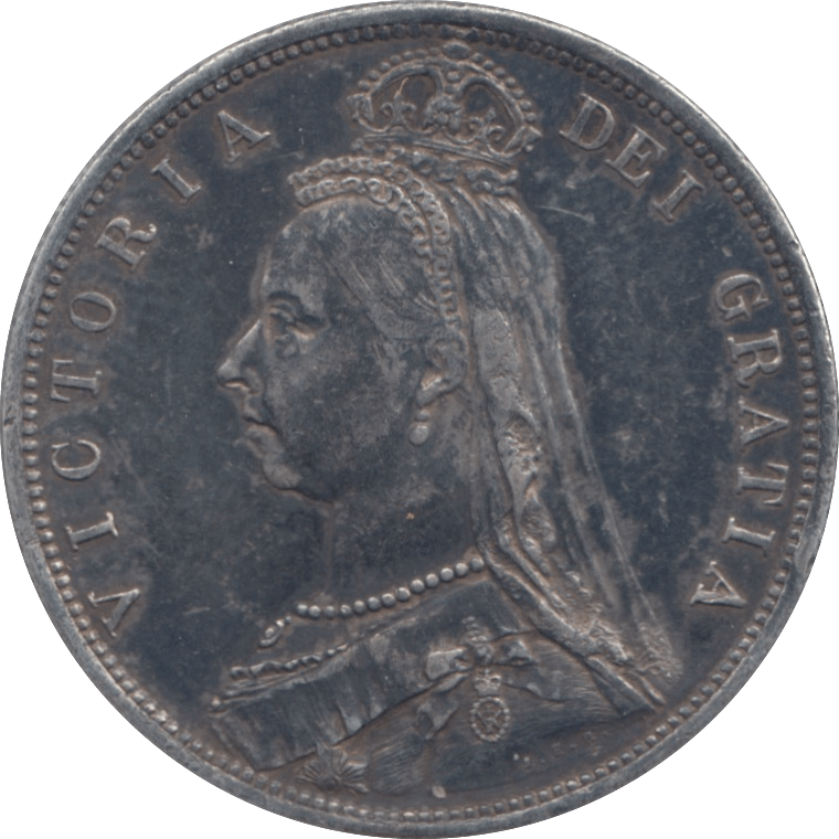 This 1887 Halfcrown represents a significant piece of British numismatic history, minted during the reign of Queen Victoria. The obverse features a left-facing bust of Queen Victoria adorned with a laurel wreath, while the reverse displays a crowned shield of the Royal Arms within a wreath of roses, thistles, and shamrocks, symbolizing the unity of England, Scotland, and Ireland.
