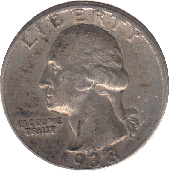 The 1938 Washington Quarter exemplifies the elegance of early American coinage, introduced to commemorate George Washington's legacy. This silver quarter displays a distinguished portrait of the nation's founding president on the obverse, paired with a soaring eagle on the reverse—a design that has endured as a symbol of American numismatic artistry. Composed of 90% silver, this coin holds intrinsic precious metal value alongside its historical significance. The 1938 mintage is particularly valued by collectors for its position at the inception of the Washington Quarter series, offering both rarity and authenticity. Whether acquired for its silver content, historical importance, or numismatic merit, this genuine U.S. quarter serves as a tangible artefact of mid-20th century American coinage and a distinguished addition to any serious collector's holdings.