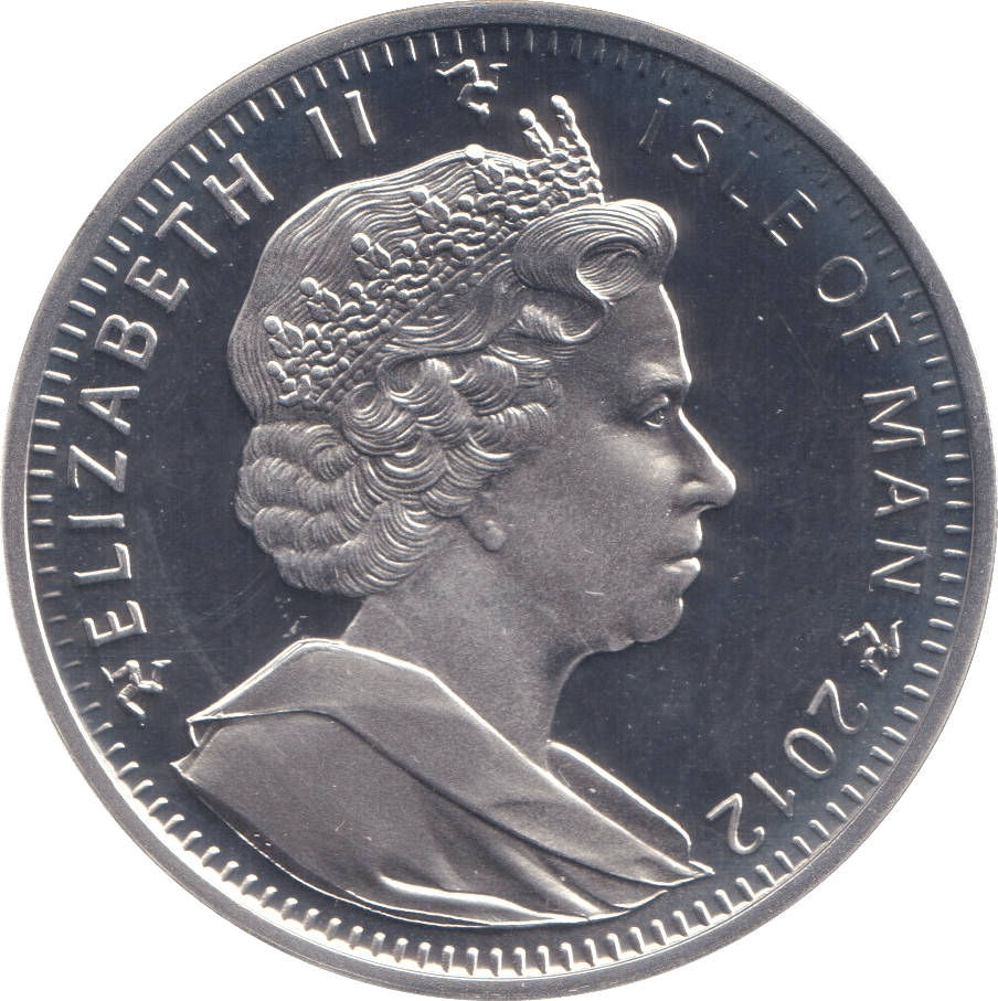 This 2012 silver proof one crown coin from the Isle of Man showcases the territory's distinctive numismatic tradition. Struck in fine silver to proof standard with immaculate surfaces and refined imagery, it reflects meticulous minting craftsmanship. A valuable addition to collections of Crown Dependencies coinage and silver proofs, this piece offers both precious metal content and the collector appeal associated with Isle of Man's respected coin programme.