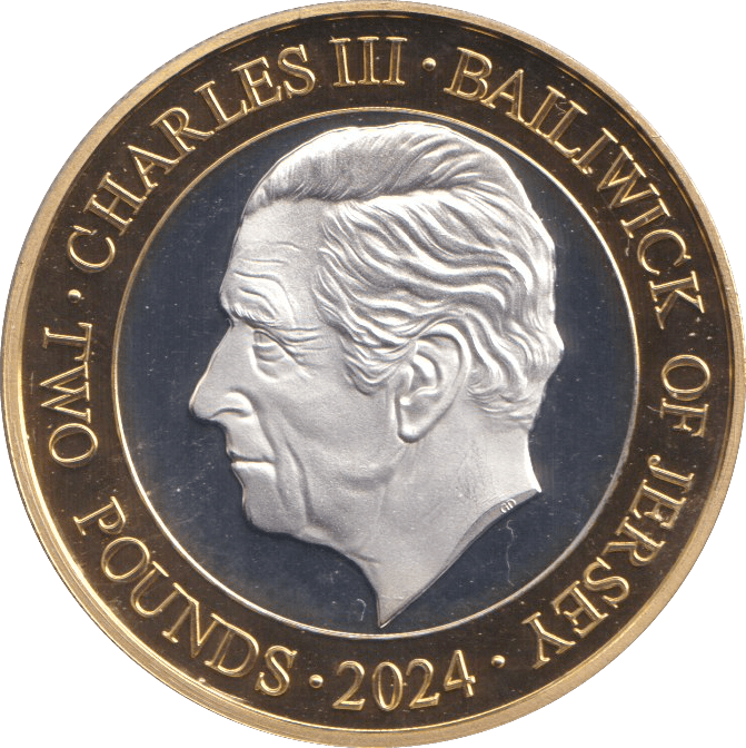 This 2024 Silver Proof Two Pound coin from the Bailiwick of Jersey represents contemporary Channel Islands numismatic artistry. Struck in pure silver with pristine proof finish, the coin demonstrates the technical excellence and design sophistication characteristic of Jersey's official coinage programme. A refined collectible for those pursuing Channel Islands issues, silver proof coins, and regional British Isles numismatics. The piece combines numismatic quality with geographical significance, appealing to specialists and generalist collectors alike.