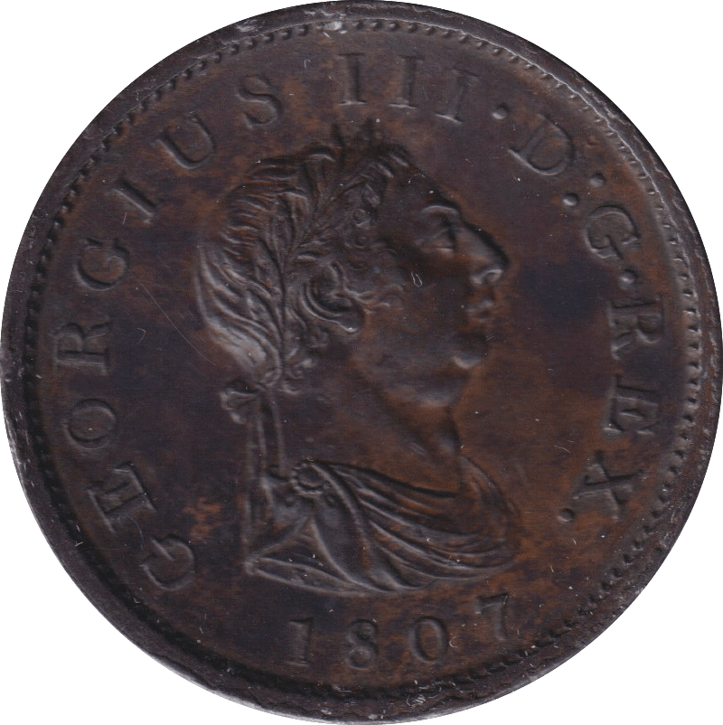 An exceptional early 19th-century penny graded Almost Uncirculated, representing a premium example of this Napoleonic-era date. This 1807 copper penny exhibits minimal handling marks with sharp striking detail across both obverse and reverse. The lustre remains evident in protected areas, demonstrating the coin's remarkable state of preservation. A standout piece for discerning collectors seeking high-grade Georgian pennies.