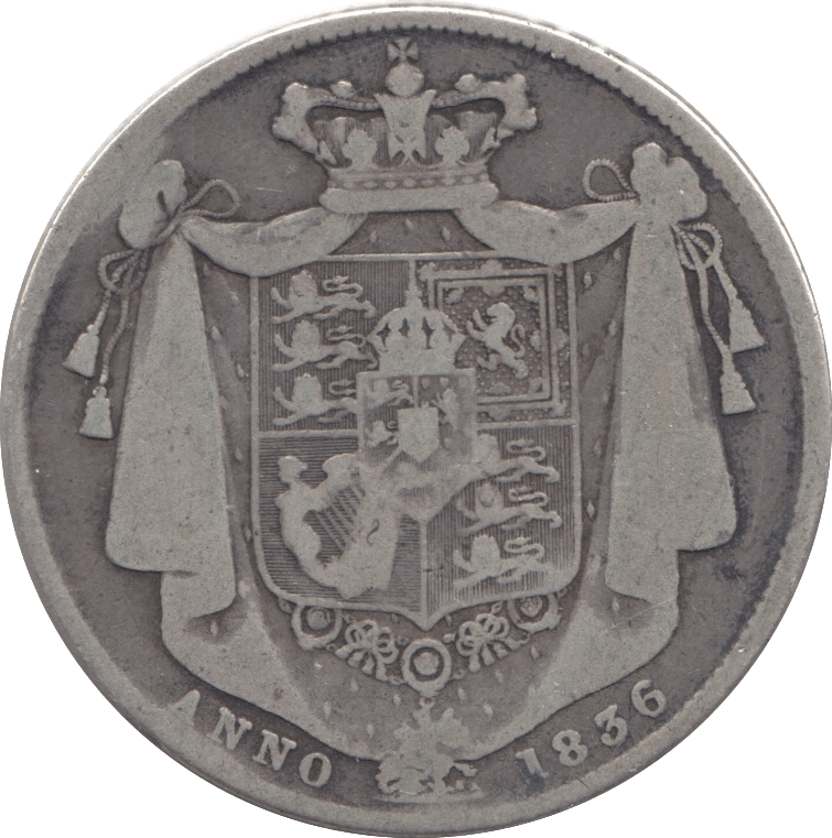 This 1836 Halfcrown, struck during the reign of William IV, represents a significant piece of English numismatic history. The obverse features a right-facing bust of King William IV, capturing the monarch’s likeness as was standard for the period. The reverse displays the crowned shield of the Royal Arms, symbolizing the strength and unity of the British Empire. In Near Fine (NF) condition, this coin shows considerable wear from circulation, with major design elements visible but significantly smoothed. Despite its wear, this halfcrown remains a valuable artifact for collectors interested in the historical aspects of early 19th-century British coinage.