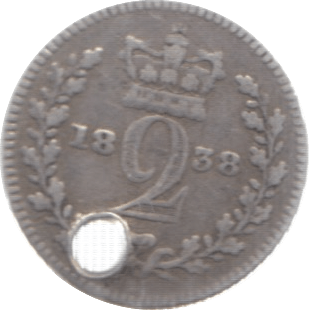 1838 MAUNDY TWOPENCE ( FINE ) HOLED