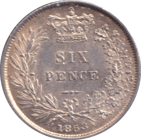 A remarkable 1853 sixpence in Uncirculated condition, representing an exceptional specimen from the mid-Victorian era. This silver coin exhibits full original lustre and pristine surfaces with no signs of wear, preserving complete strike detail as it left the Royal Mint. Struck during Queen Victoria's Young Head period, this UNC example is highly sought by serious collectors for its superior preservation and rarity in this grade. A museum-quality piece ideal for advanced numismatists or those assembling premium collections of mid-19th-century British silver coinage.