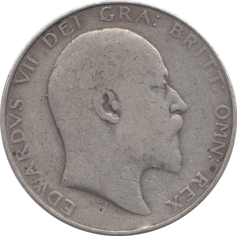 This 1906 Halfcrown is a significant piece of British numismatic history, struck during the reign of King Edward VII. The obverse showcases a right-facing portrait of King Edward VII adorned with a laurel wreath, capturing the regal essence of the era. On the reverse, a crowned shield of the Royal Arms is depicted within a wreath of roses, thistles, and shamrocks, symbolizing the unity of England, Scotland, and Ireland.