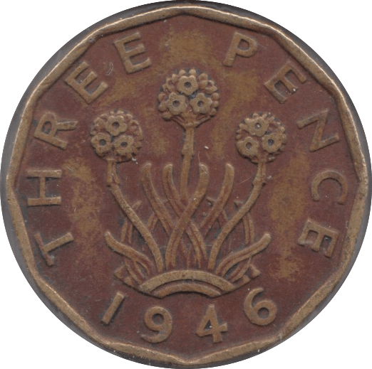 1946 THREEPENCE ( GVF ) 8 BRASS