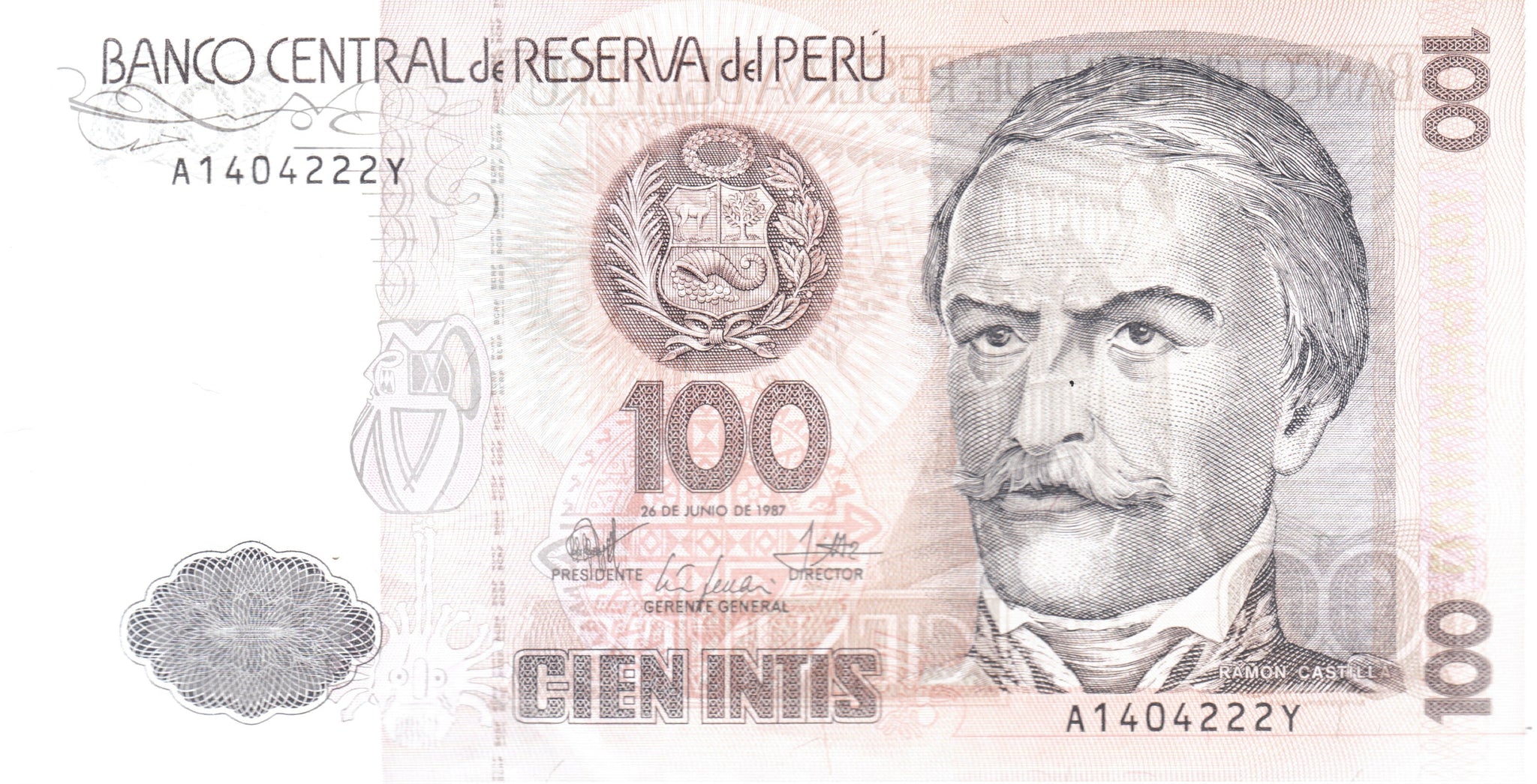 1987 100 INITS BANCO DE PERU PERU BANKNOTE REF 148