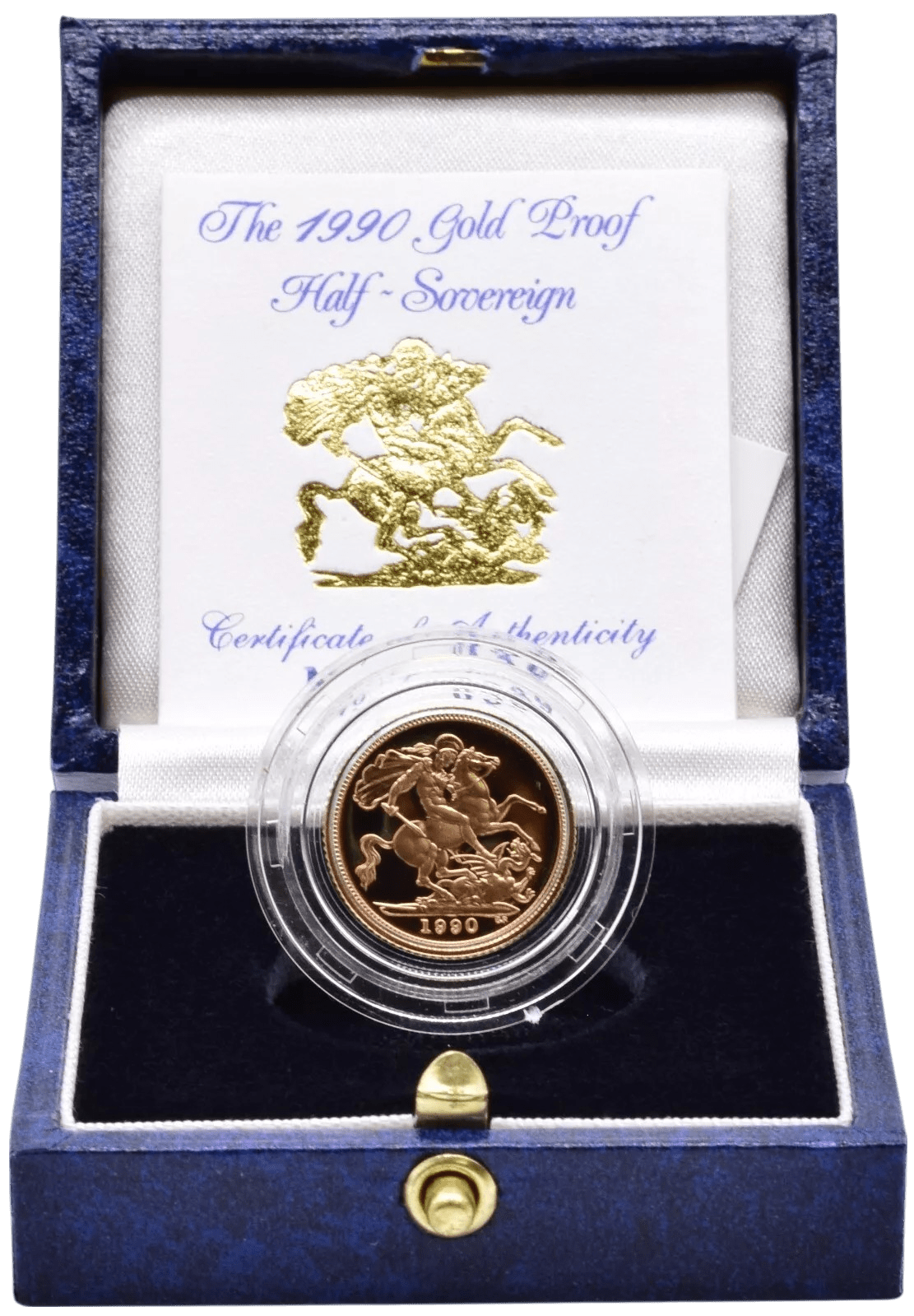 1990 GOLD PROOF HALF SOVEREIGN BOXED - GOLD PROOF HALF SOVEREIGNS - Cambridgeshire Coins