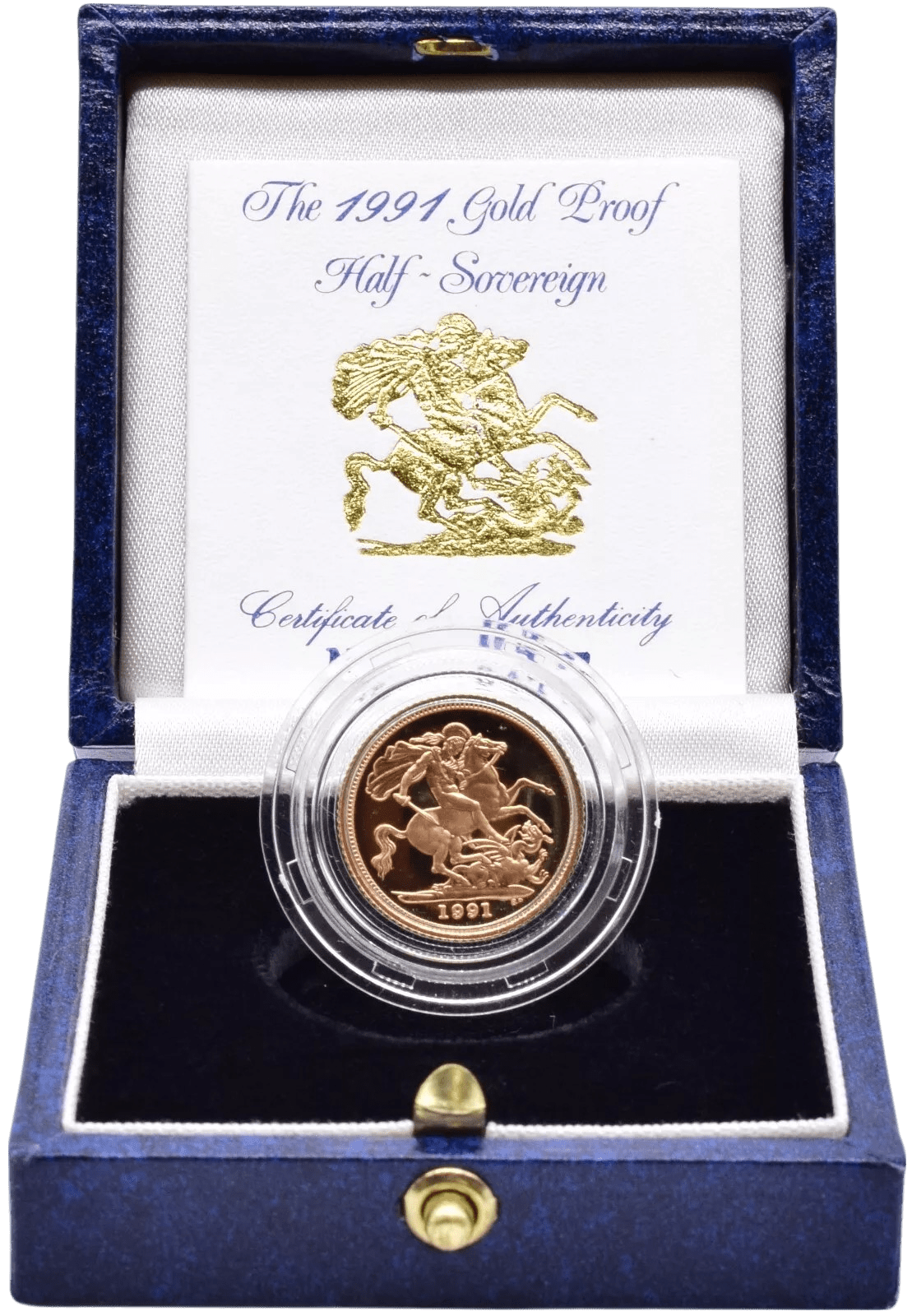Introducing the 1984 GOLD PROOF HALF SOVEREIGN BOXED, the perfect addition to any coin collection. Made from high-quality gold, this half sovereign is sure to impress. With its beautiful presentation box, this coin makes for an excellent gift or investment opportunity. Don't miss out on this limited edition item.