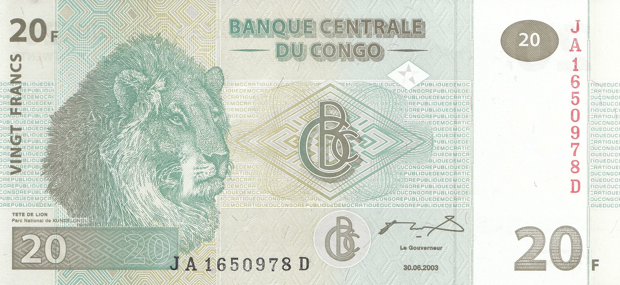 2003 20 FRANCS BANKNOTE CONGO REF 1126