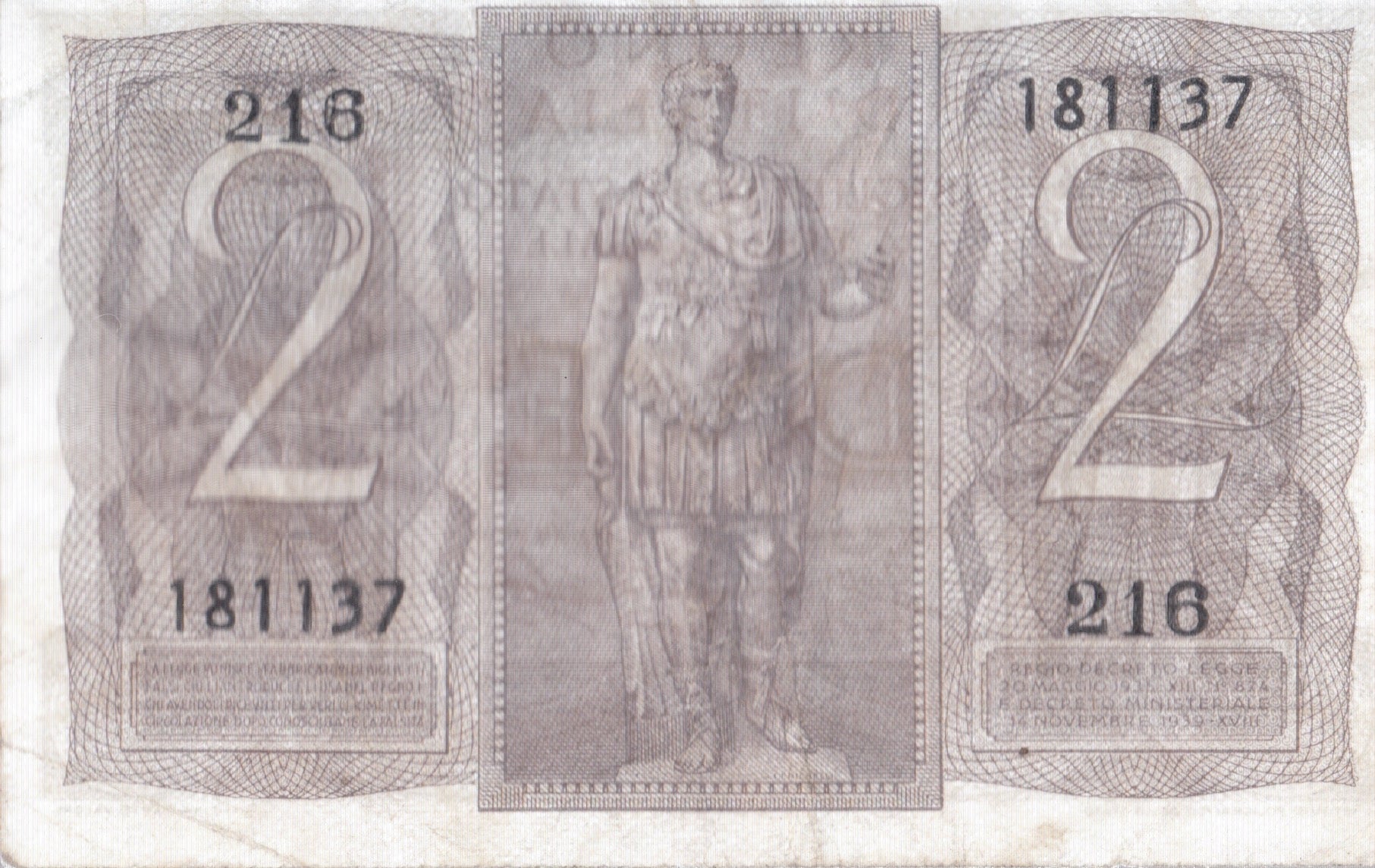 2 LIRE REGNO D'ITALIA ITALIAN BANKNOTE REF 16