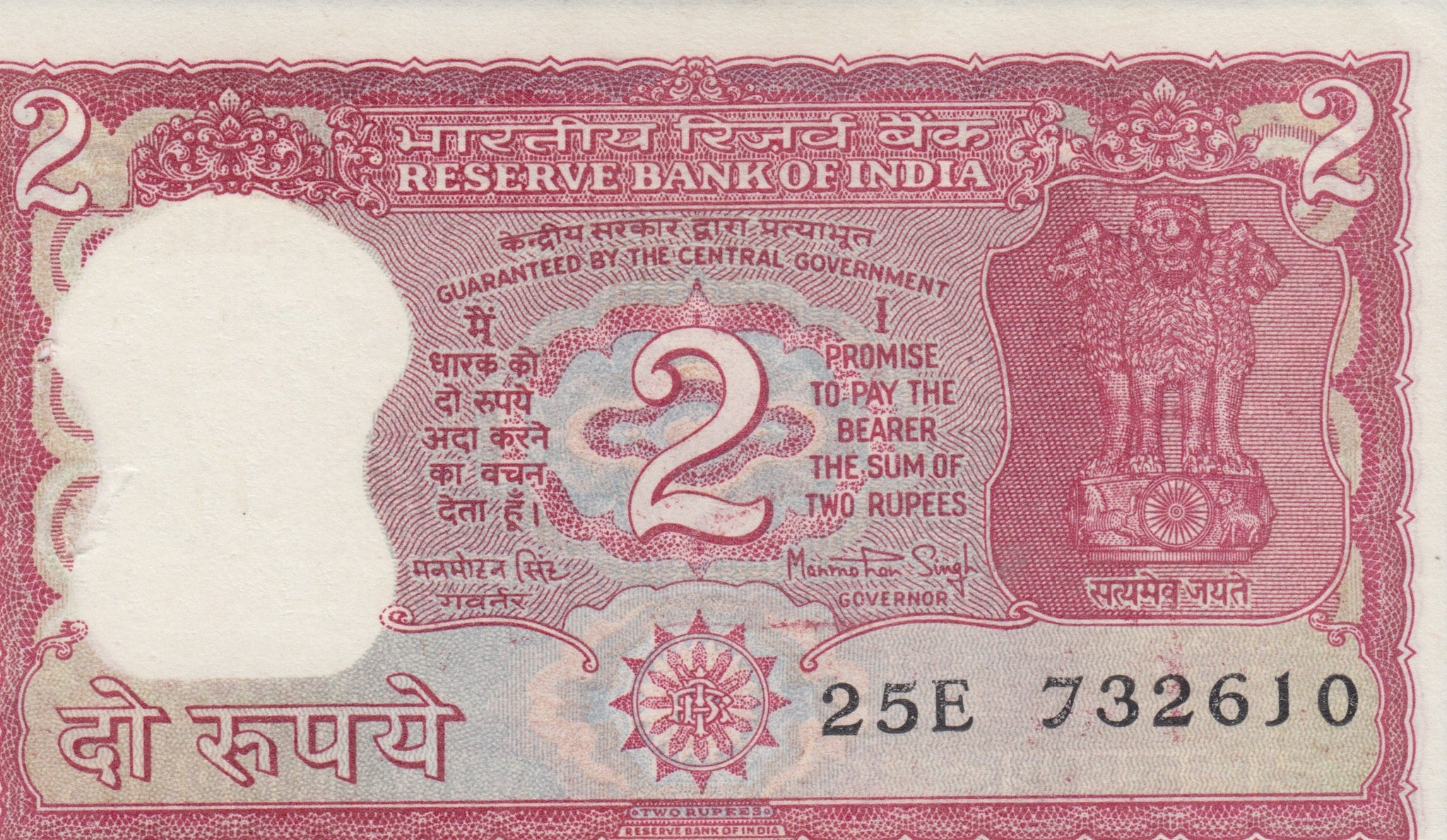 2 RUPEES BANK OF INDIA BANKNOTE INDIA REF 802
