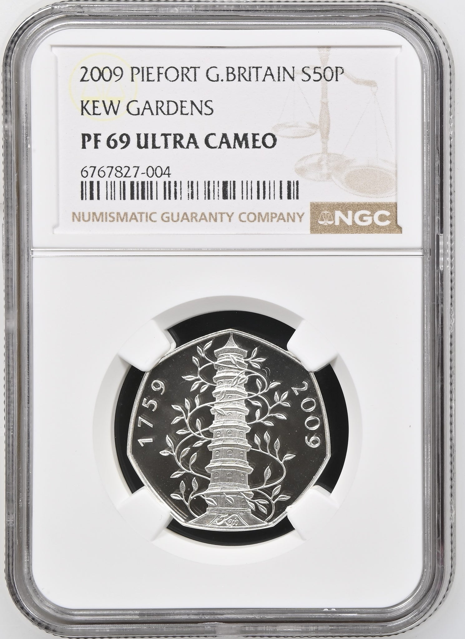 A distinguished addition to any numismatic collection, this 2009 Silver Proof Piedfort 50 Pence coin celebrates the 250th anniversary of Kew Gardens. The piedfort format—struck at double thickness—creates substantial heft and presence, whilst the PF69 Ultra Cameo grade reflects near-perfect condition with exceptional contrast between frosted motifs and brilliant mirror fields. The ultra cameo designation underscores the coin's superior aesthetic qualities and eye appeal. Composed of sterling silver, this commemorative piece combines historical significance with technical excellence, appealing to discerning collectors who appreciate both the artistry of British proof coinage and the botanical heritage it honours.