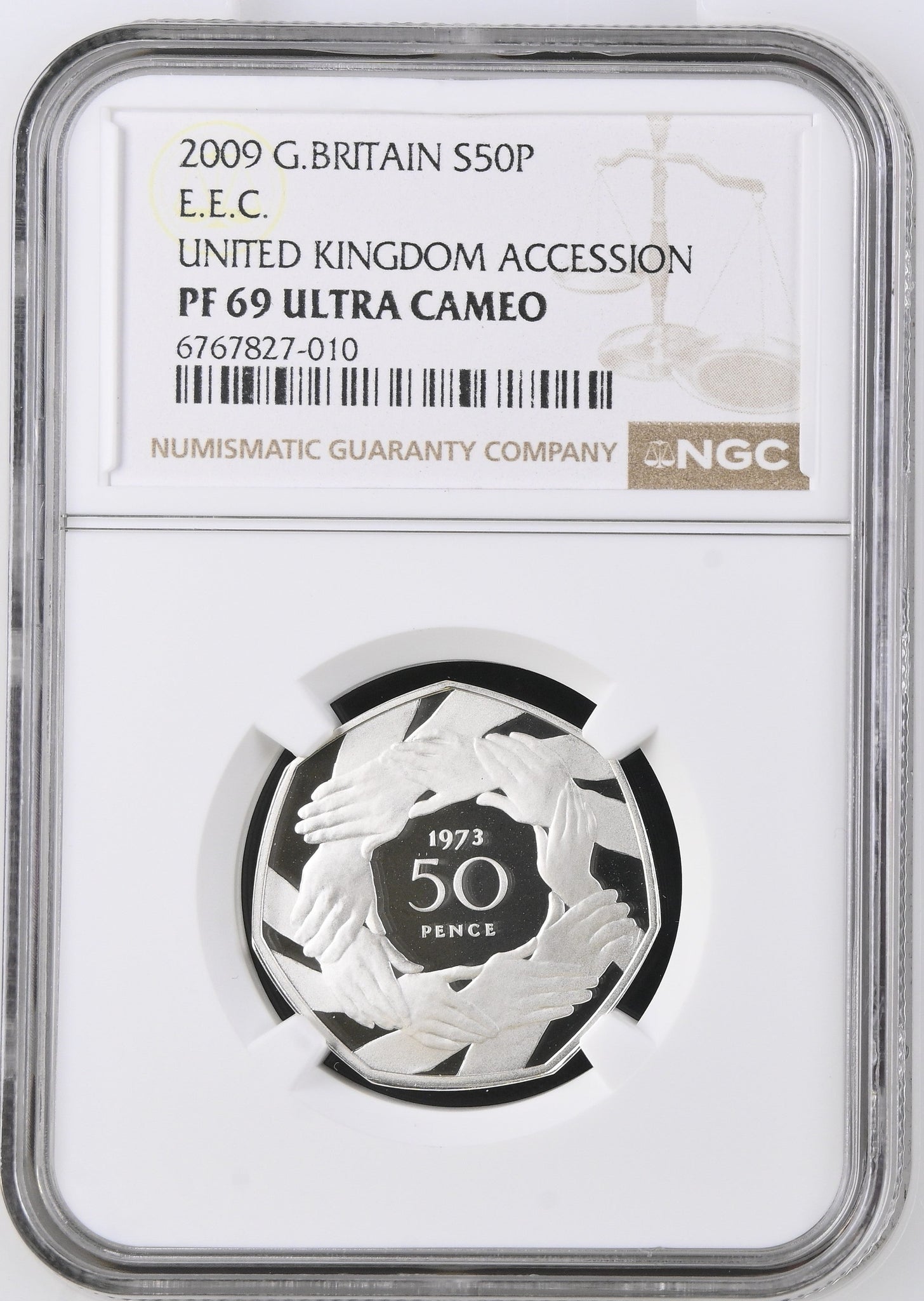 This distinguished 2009 Silver Proof coin commemorates the Accession of the United Kingdom, capturing a significant moment in British constitutional history. Graded PF69 Ultra Cameo, this piece exemplifies superior proof craftsmanship with remarkable definition between the frosted design and luminous mirror fields. The ultra cameo classification denotes exceptional visual impact and eye appeal, hallmarks of premium numismatic artistry. Composed of sterling silver, the coin's weight and presence reflect the gravitas of its commemorative subject. Ideal for collectors pursuing high-grade British proof coinage, this piece merges historical resonance with technical excellence, offering both investment potential and the satisfaction of owning a meticulously preserved example of modern British numismatic achievement.