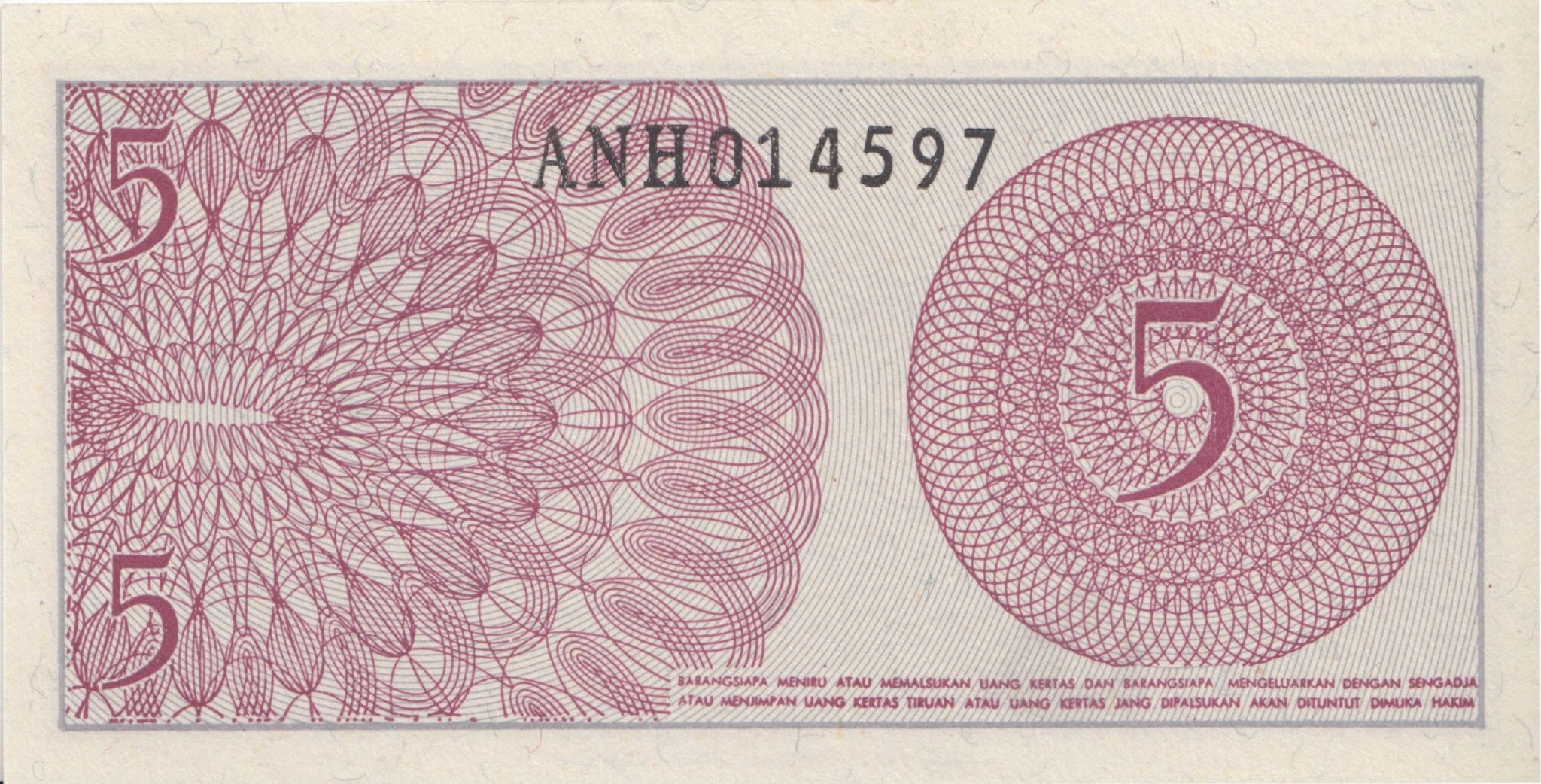 BANK OF INDONESIA 5 SEN BANKNOTE REF 1561
