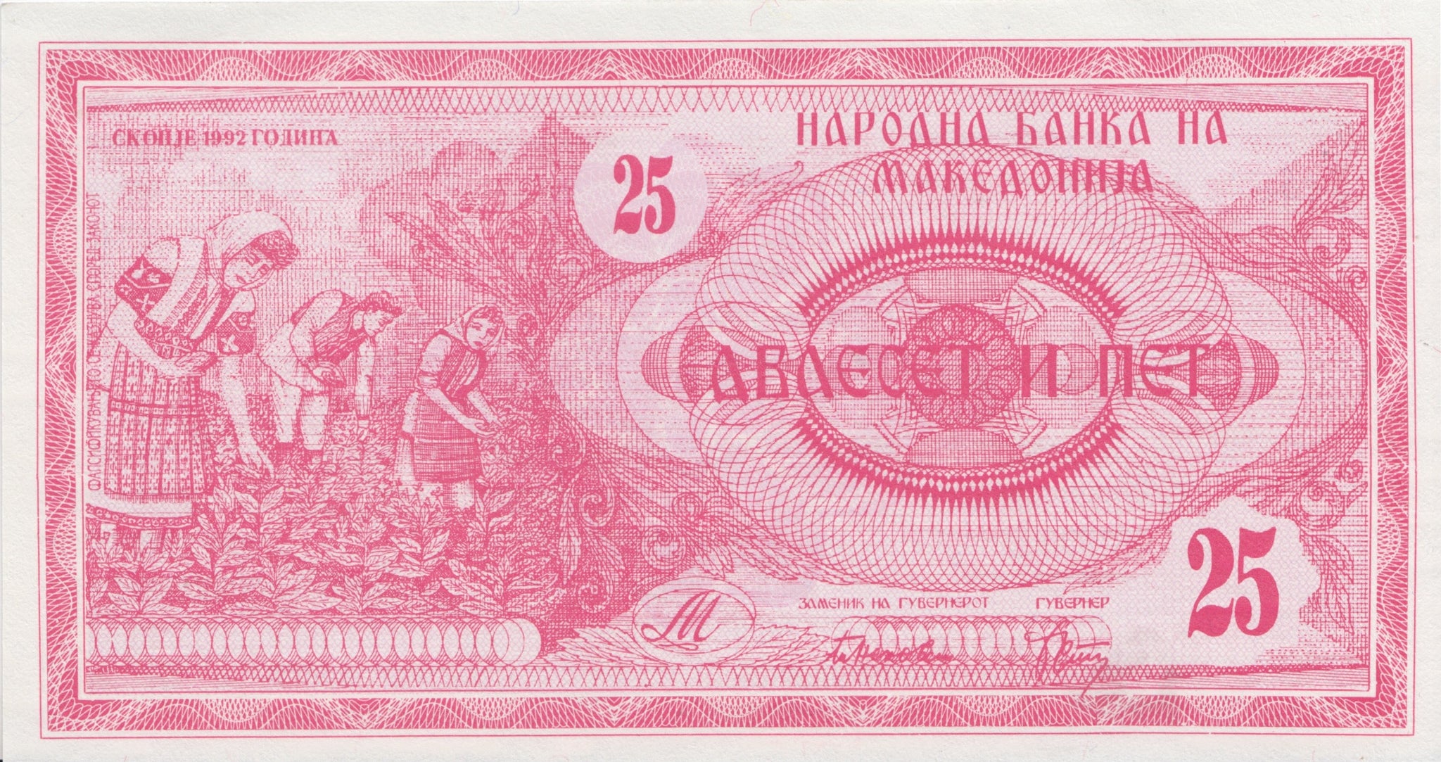 BANK OF MACEDONIA 25 DENARS BANKNOTE REF 1429