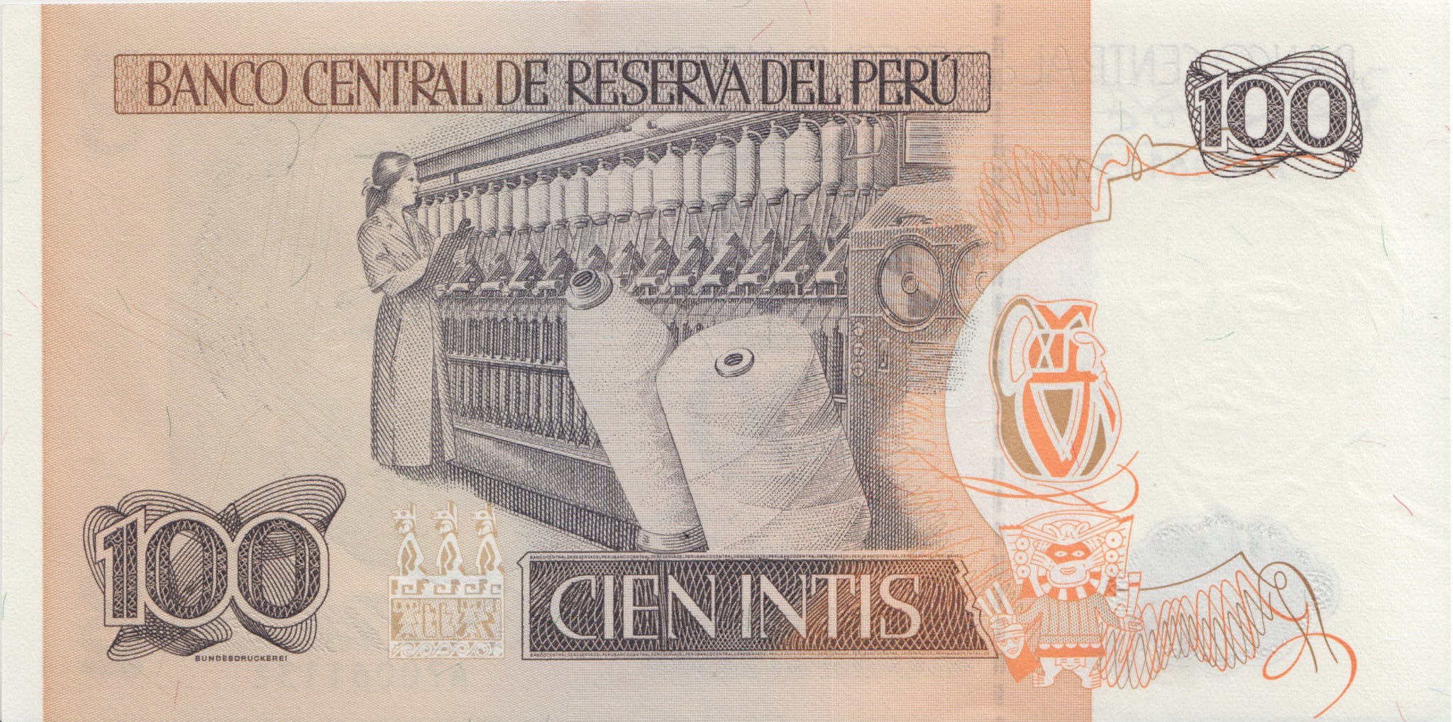 BANK OF PERU 100 INTIS BANKNOTE REF 1555