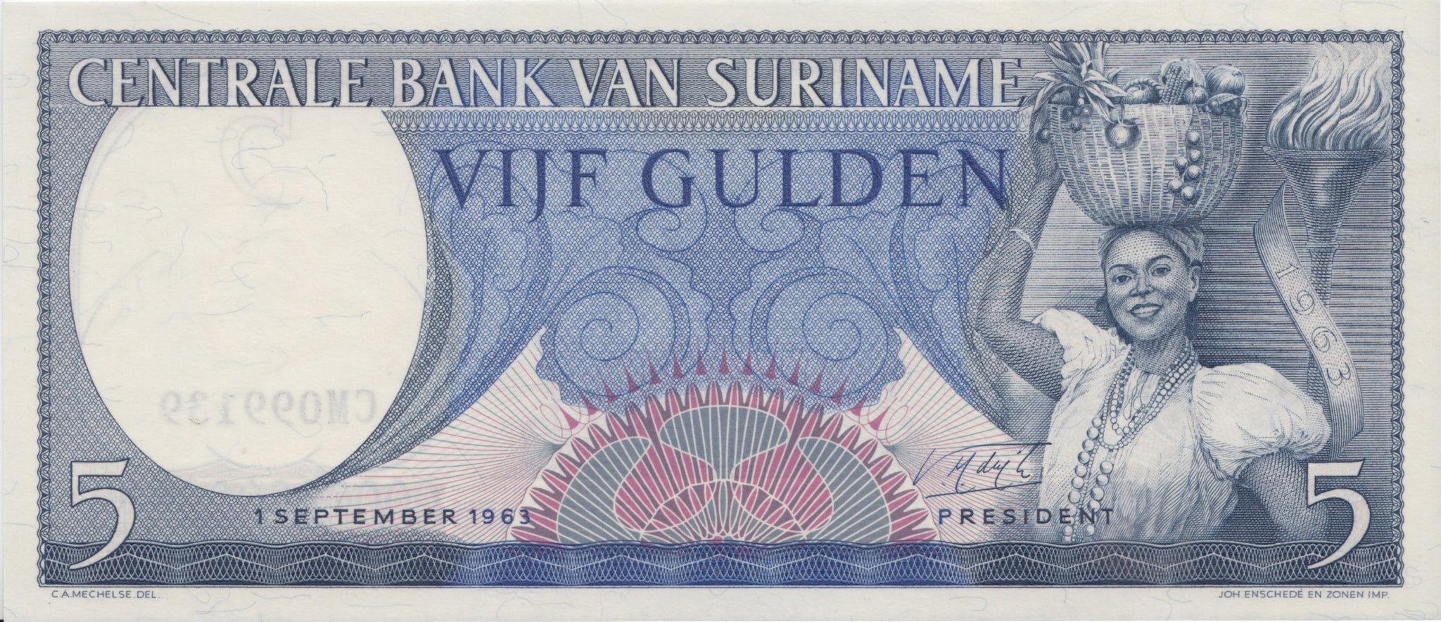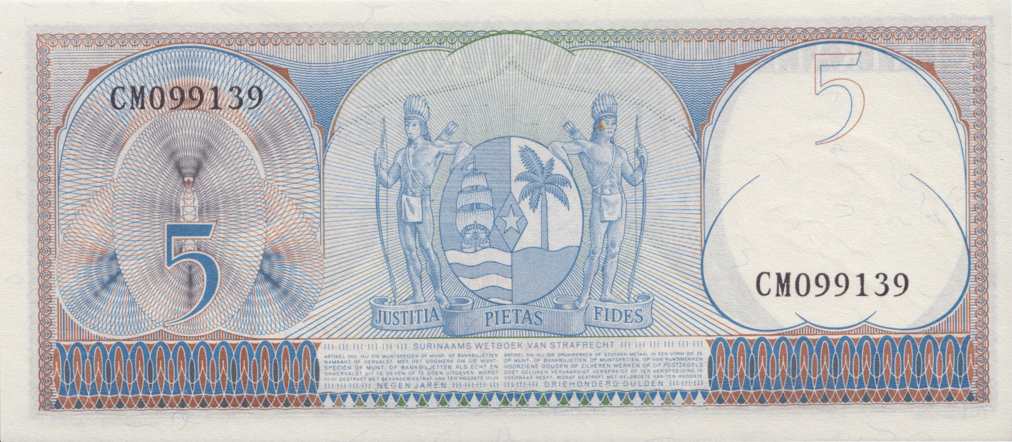 BANK OF SURINAME 5 GULDEN BANKNOTE REF 1566