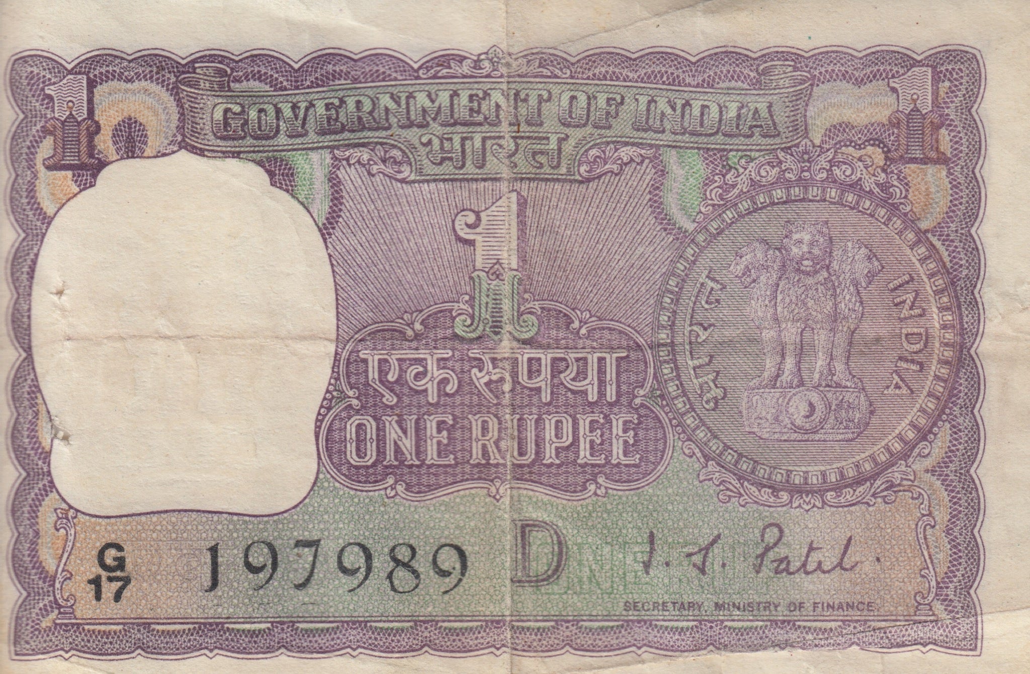 ONE RUPEE GOVERNMENT OF INDIA INDIA BANKNOTE REF 185