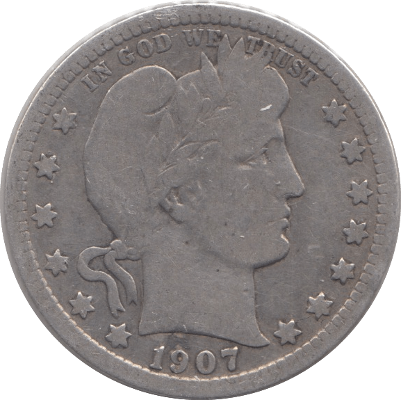 1907 SILVER QUARTER DOLLAR USA